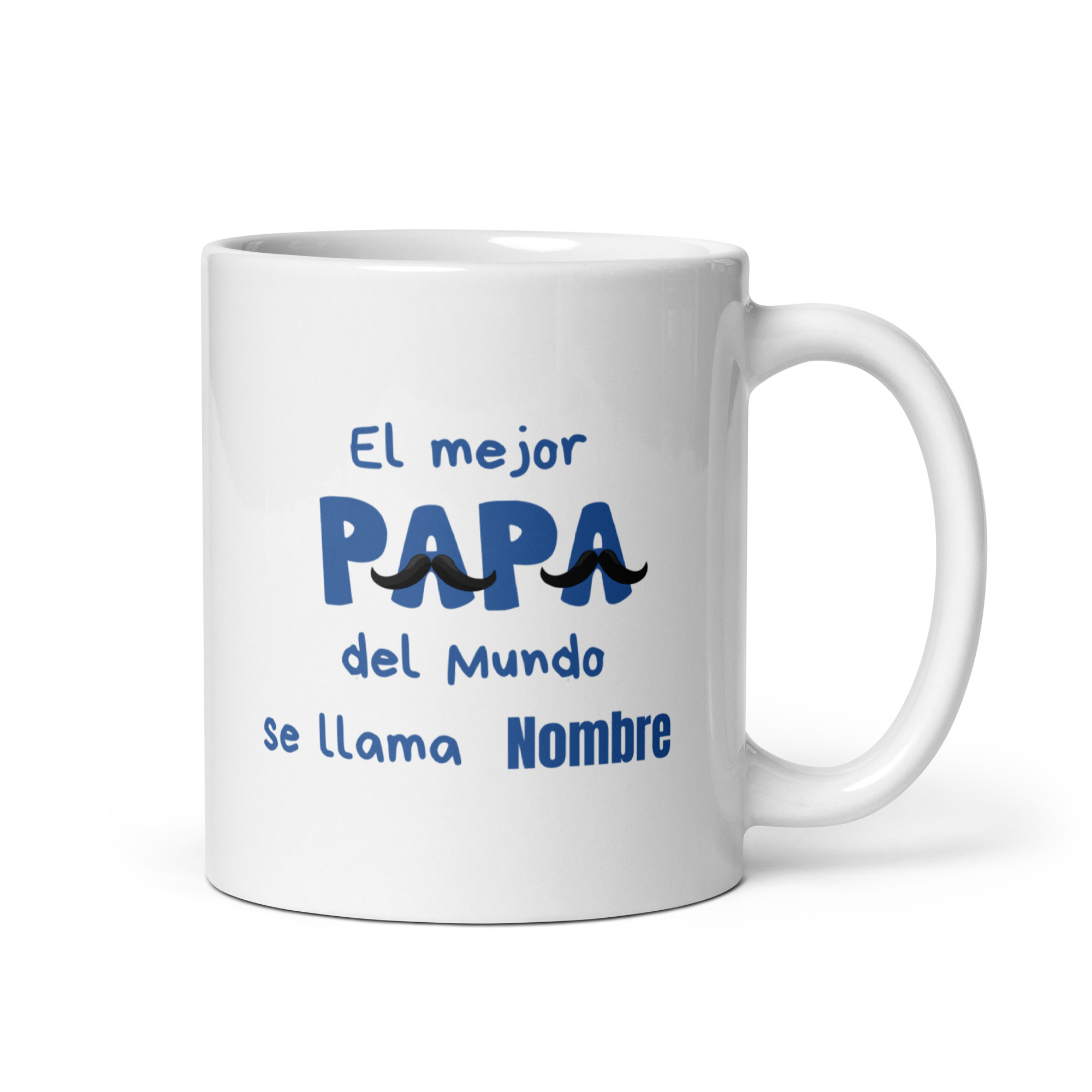Sorprender a papá con un regalo que refleje lo especial que es nunca ha sido tan sencillo. Esta taza personalizada para papá con el mensaje «El mejor PAPÁ del Mundo se llama…» es la forma más tierna y original de reconocer su valía. El diseño, con una tipografía moderna y unos divertidos bigotes, le da un toque único y con personalidad. Además, se le añade el nombre que nos indiques, haciendo de cada taza una pieza exclusiva e irrepetible.